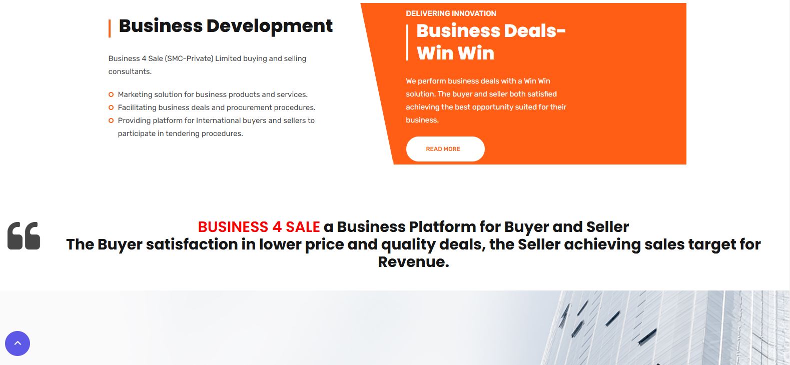 We are excited to present our web development project for Business 4 Sale (SMC-Private) Limited, a leading consultancy firm specializing in buying and selling businesses, marketing solutions, and facilitating procurement procedures. Business 4 Sale serves as a bridge between international buyers and sellers, offering a seamless platform for businesses to connect, trade, and participate in tendering procedures.
