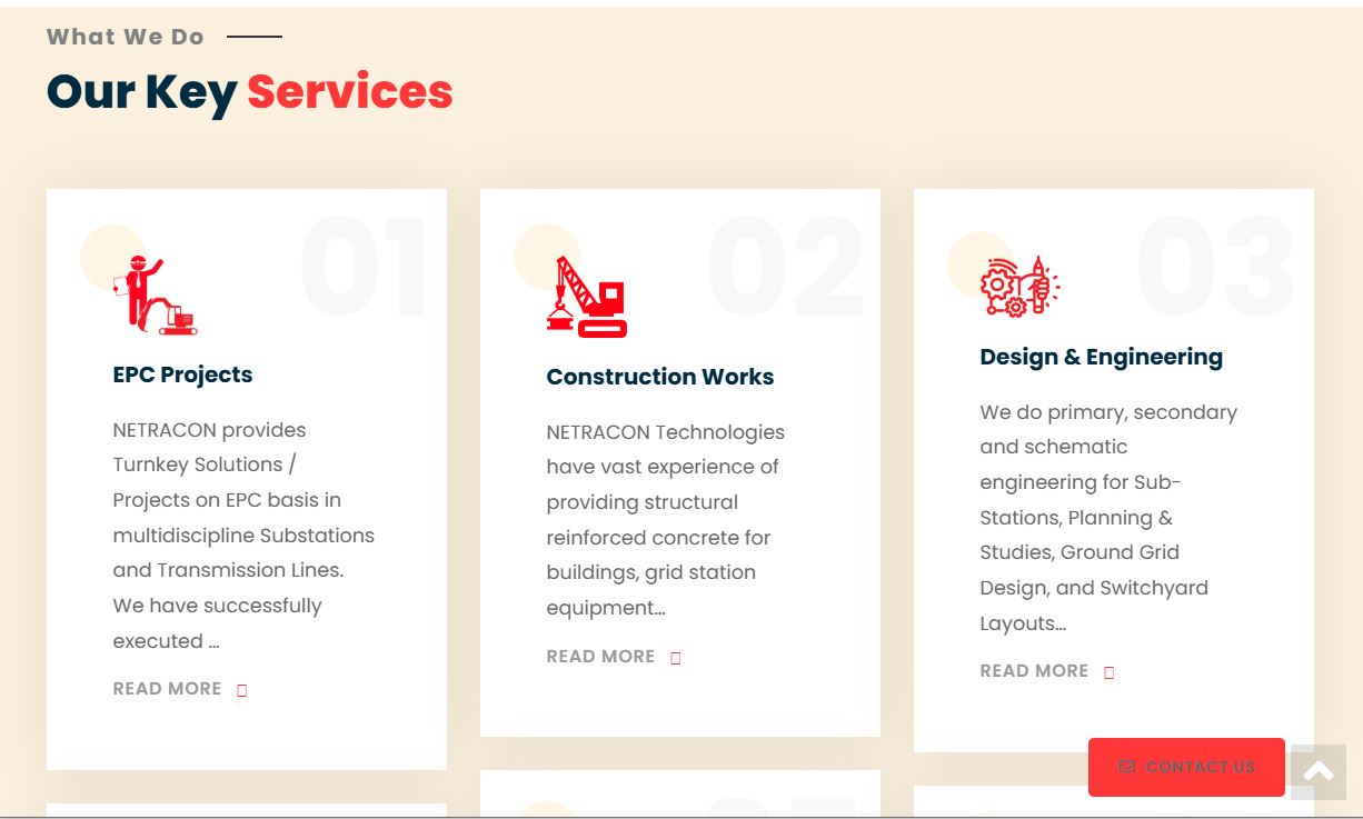 We are proud to showcase our web development project for Netracon Technologies, a leading company in Power Transmission, Distribution, and Telecom services. Renowned for their innovative solutions and commitment to excellence, Netracon Technologies sets the benchmark for creating value for customers and society while maintaining the highest standards of compliance and responsibility.